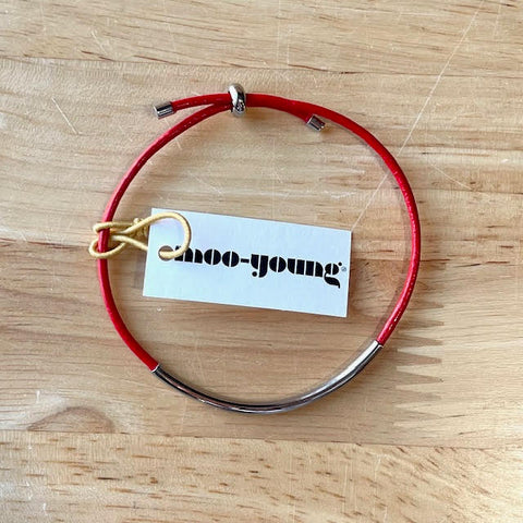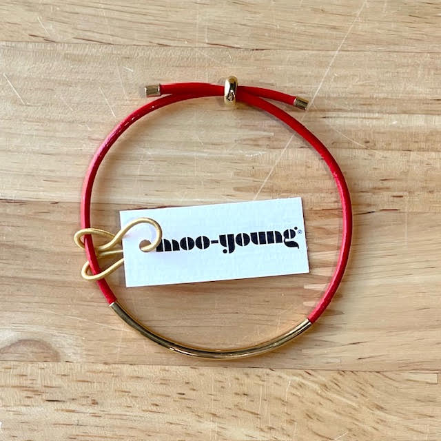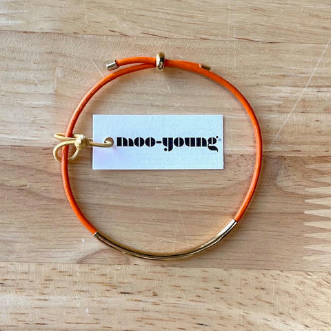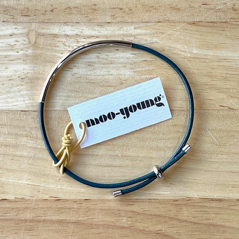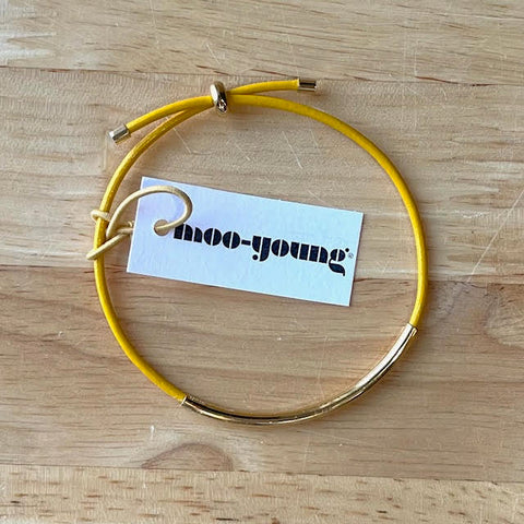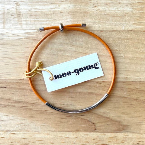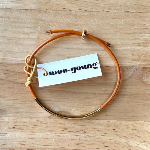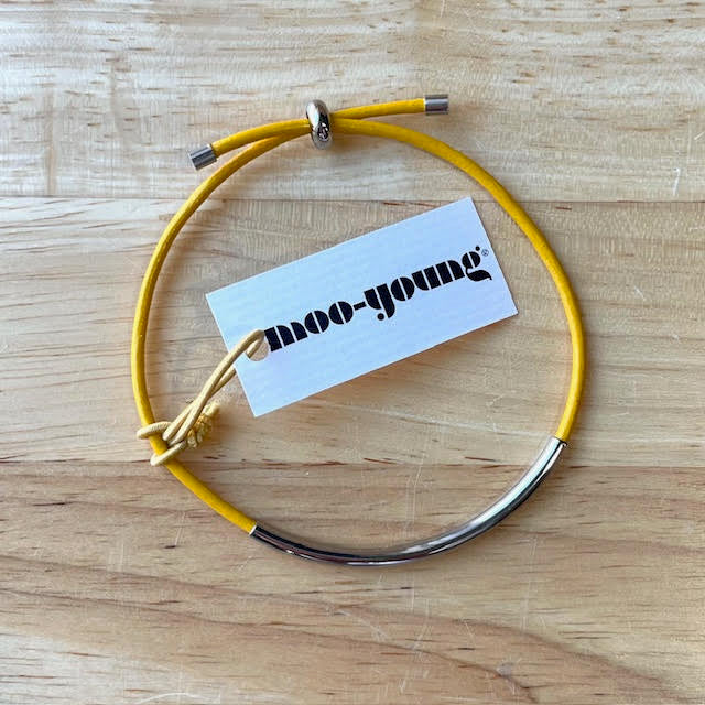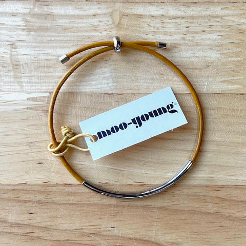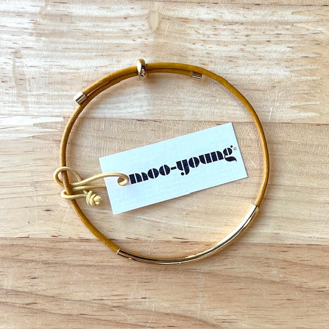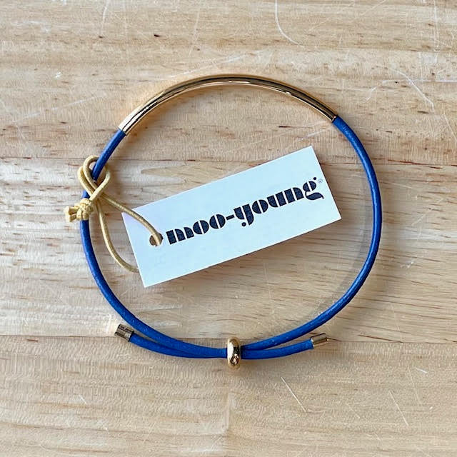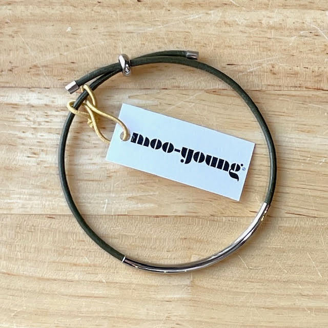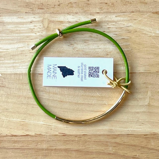 Hand dyed leather bracelets made by Maine artist Francine Moo-Young using leather and stainless steel/gold plated stainless steel!