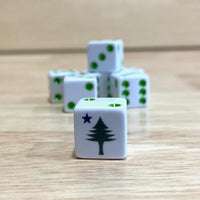 This design is the state of Maine’s first official flag, used from 1901-1909. The star on the flag represents the North Star and the tree represents the great White Pine, Maine’s official state tree.