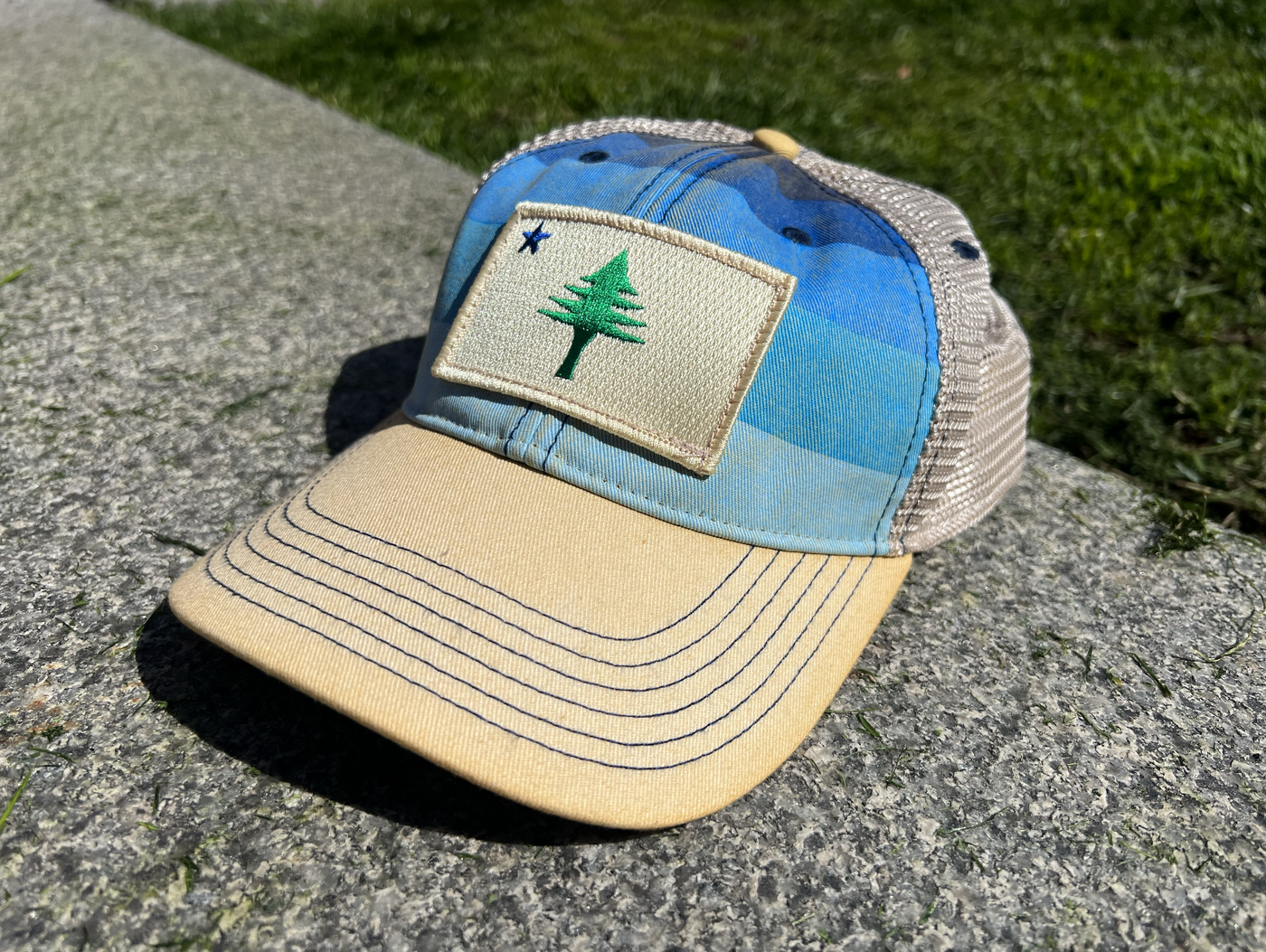 1901 Flag Original Patch Trucker Hat - Blue Stripe Khaki