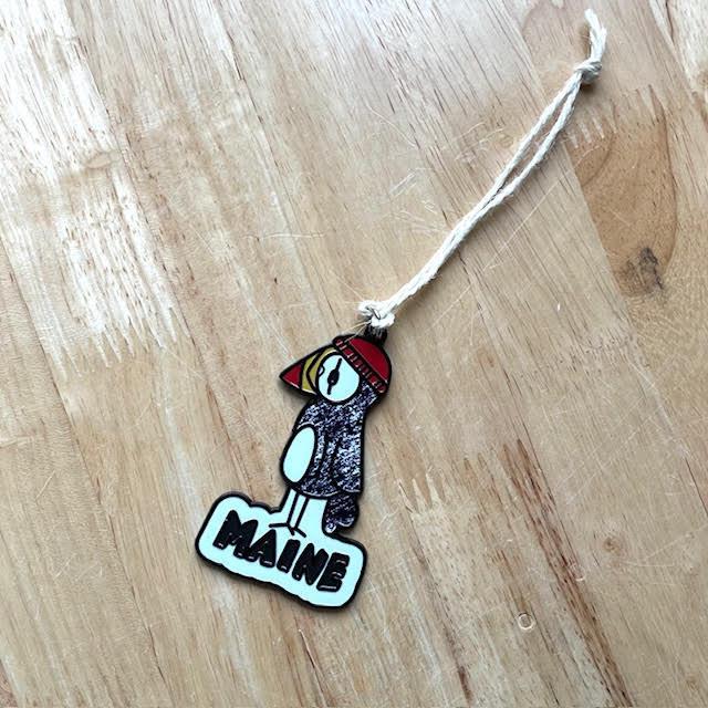Designed by Paul Devlin, former employee of the Maine Souvenir Shop. The design is also available on stickers, tees, youth tees, magnets, cribbage pegs and hats.
