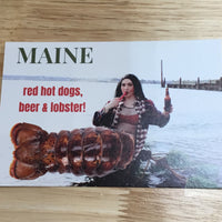 Designed by Hayleigh Morrow from Saco ME. This is her image of Maine with the local beer, red snapper hotdog, pine tree and lobster tail.