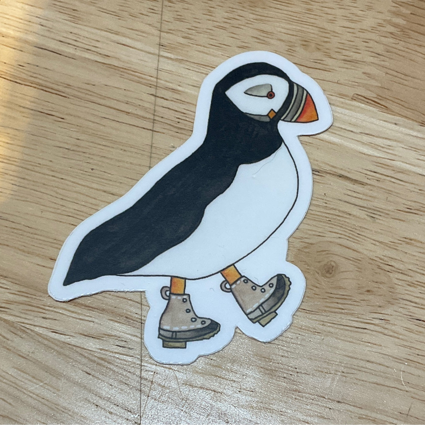 Puffin Wearing Maine Boots Sticker by @scribblesanddoodlez - Regular