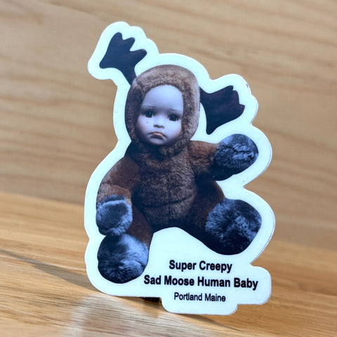 Super Creepy Human Moose Baby Sticker by @themainesouvenirshop - Regular