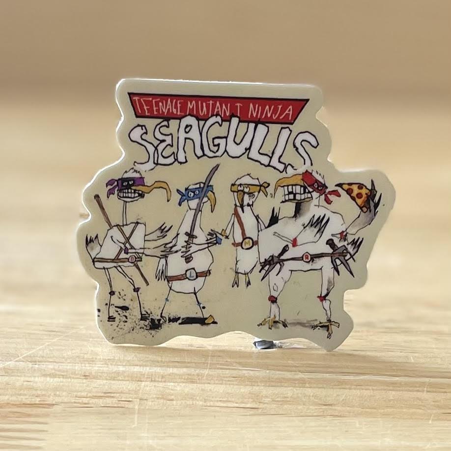 Teenage Mutant Ninja Seagulls Sticker by @lewisrossignol - Regular