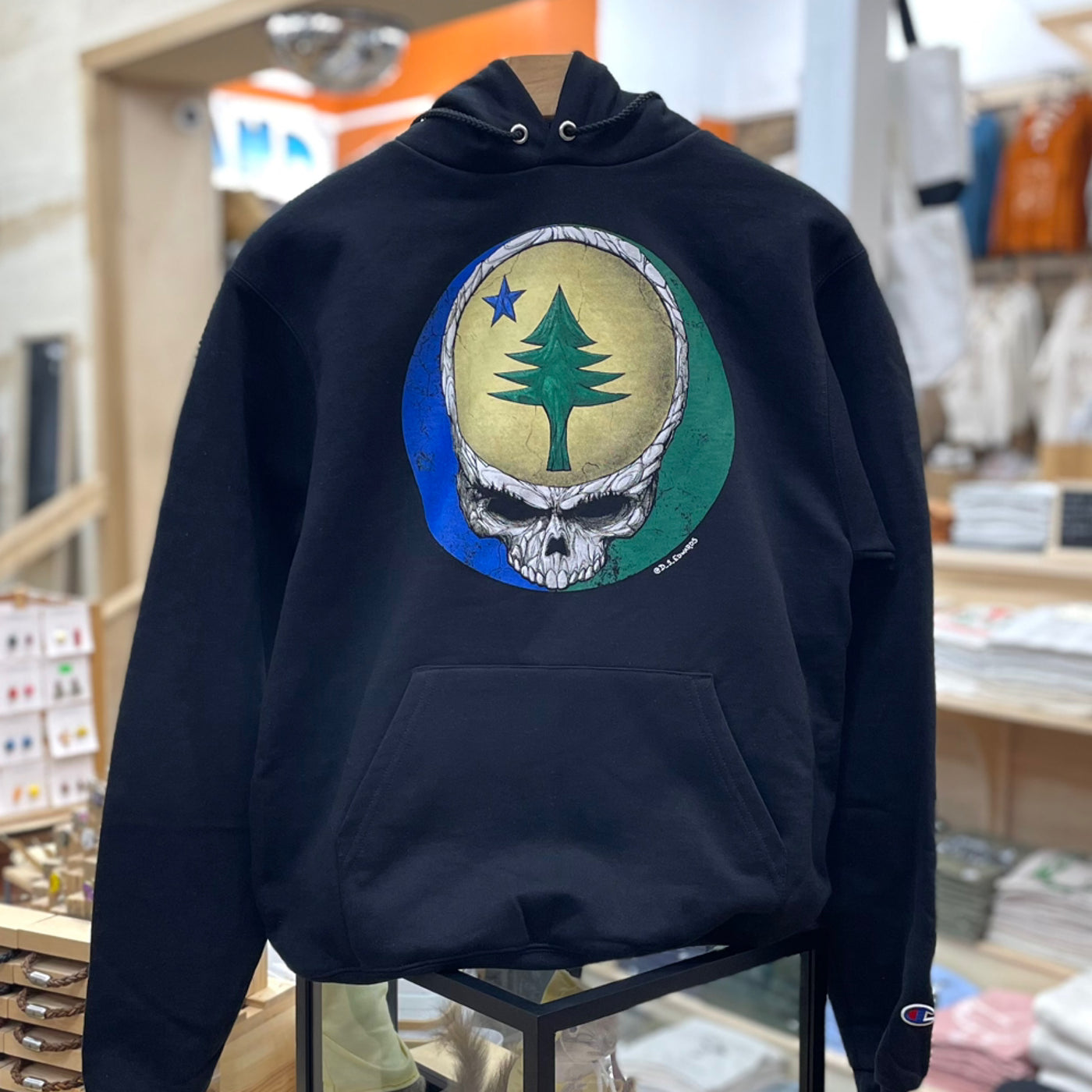 Designed by Dan Edwards, an artist based out of Portland, Maine. Printed by Maine Screen Printers, Co. in South Portland, Maine.This design is available in tees, hoodies, youth tees, mugs, stickers and more coming soon! Artist Instagram: @D_S_Edwards