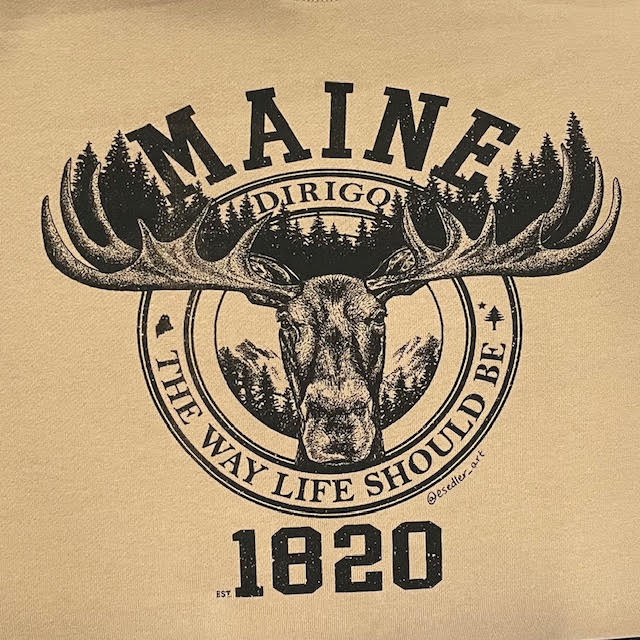Tree Moose Hand-drawn by Erica Sedler of Cape Elizabeth, Maine. Printed by Maine Screen Printers, Co. in South Portland, Maine. This design is available in hoodies, tees, mugs, prints and more! Artist Instagram: @esedler_art