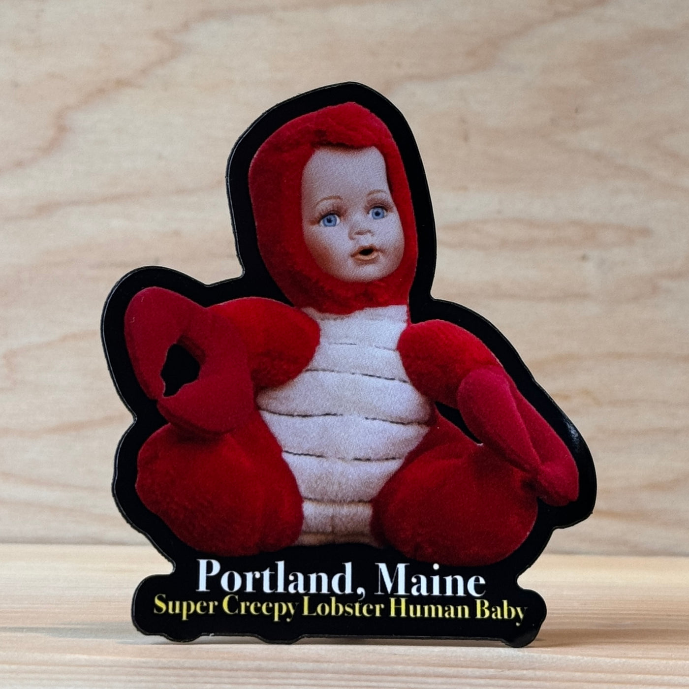 Designed by the Maine Souvenir Shop. His name is Nigel Cranbaby. Look for him hanging out in our shop regularly. Also check out his friends SAD Moose and honey Baby. Nigel and friends can be found on hoodies, t-shirts, postcards, magnets and stickers.